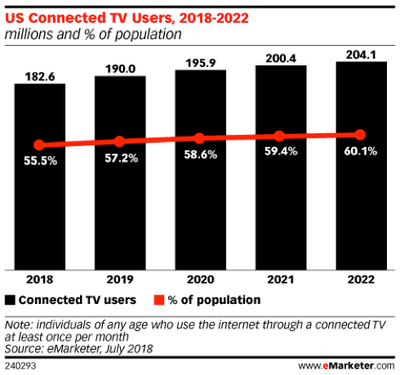 As CTV investment continues to develop, so will adoption of streaming devices (approx. 204.1 million CTV users by 2021) allowing savvy digital marketers an opportunity to get creative with messaging and engaging with customers directly through their television set.