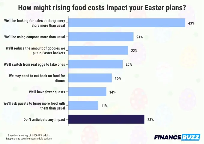 Yet, when it does come to food, 72% of people say rising food costs will, in fact, impact their Easter plans, according to Finance Buzz. But that does not necessarily mean they will spend less. It just means that they may be shopping more mindfully and carefully, utilizing savings where they can.