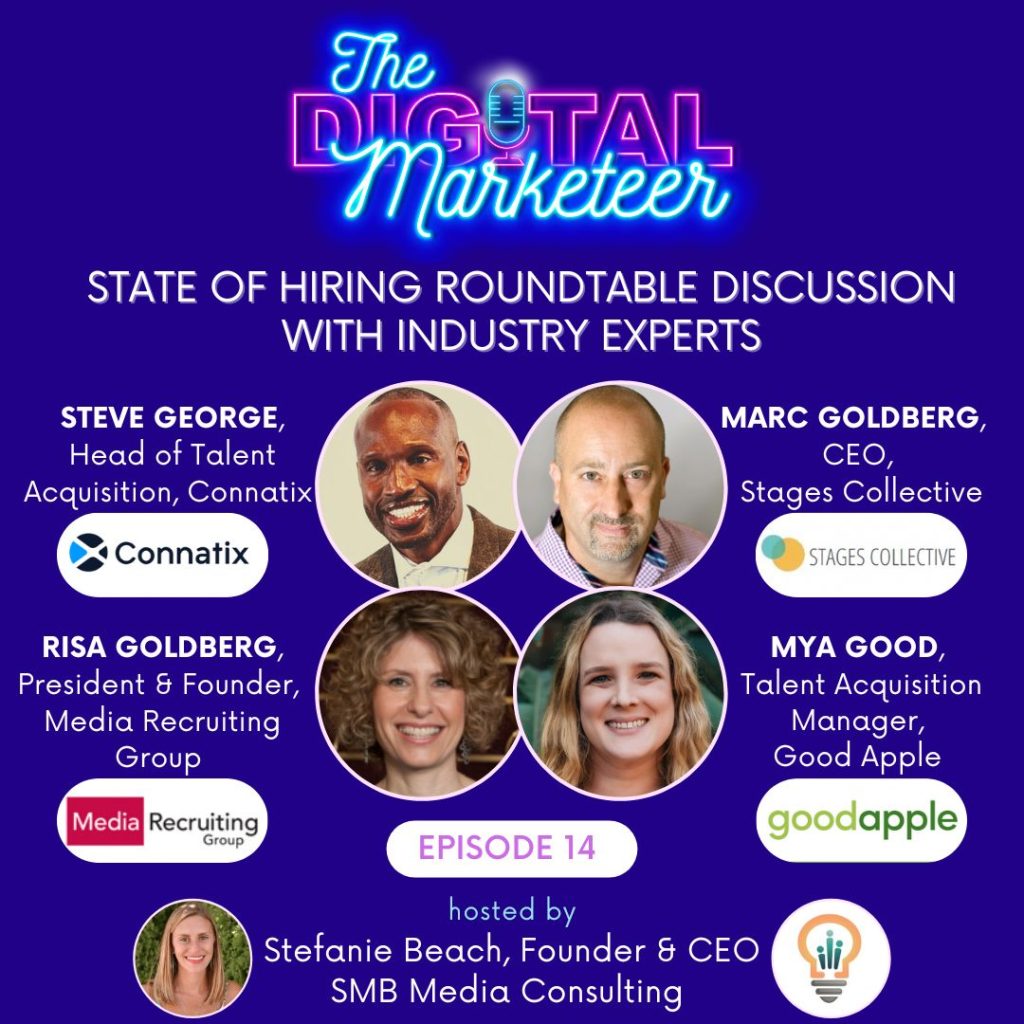 In our first ever roundtable conversation on The Digital Marketeer, Stefanie had the honor of hosting four amazing industry experts as they shared their thoughts on the current state of hiring and talent acquisition in the digital media world. Steve George, Marc Goldberg, Risa Goldberg and Mya Good shared valuable insights on trends, changes and […]